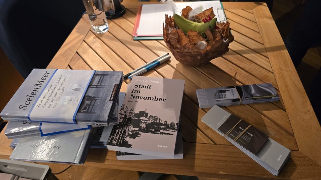 Am Freitag, 27. März 2026, begaben wir uns auf eine Geschichtenreise mit dem Harder Autor Arno Gander und musikalischen Begleitung von Siggi Wiehl. Arno las aus seinen Kurzgeschichten «SeelenMeer», aus dem Roman «Stadt im November» sowie aus seinem aktuellem Buchprojekt vor. «Ich schreibe immer Beginn und Ende» eines Romans und entwickle dann auf diesen Pfeilern den Roman», sagte Arno zu seiner Arbeit als Autor. Spannend waren auch seine weiteren Ausführungen zu seinem Schreiben..